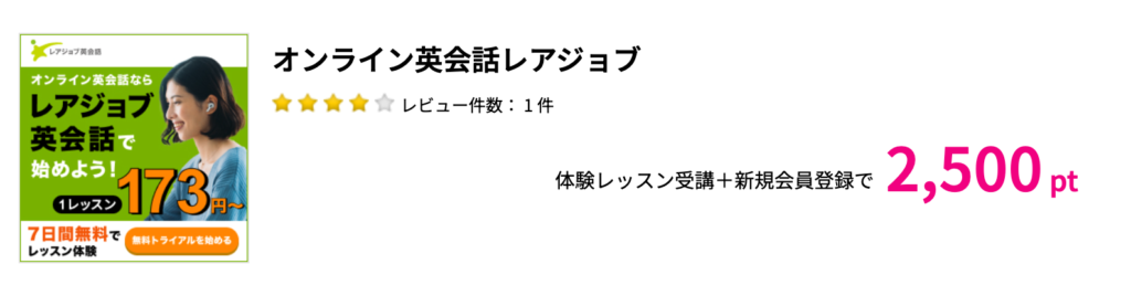 ここからは広告のお時間です!レアジョブ英会話、興味出てきましたか?もし始めたいならポイントサイト「ハピタス」を経由して登録すると2,500円相当のポイントがもらえてお得です!僕もこれ経由でポイントゲットしました。小さいけれど確かな満足!
