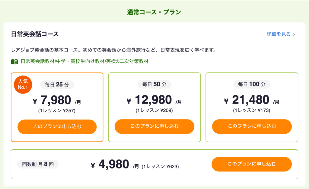 で、具体的に僕が選んだのは、真ん中。毎日50分コースです。つまり、2コマ毎日受けることが出来るコース。具体的な話はすごーく長くなるので、別の記事にまとめます。