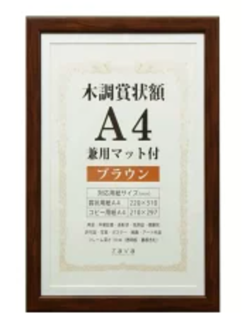 その3 万丈 VANJOH 木調賞状額 A4 兼用マット付き ブラウン